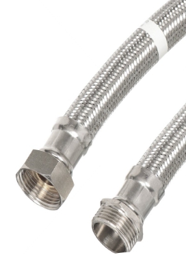 Гибкий внутренний шланг выполнен из эластичного материала EPDM, армирующая внешняя оплетка и обжим из нержавеющей стали AISI 304.