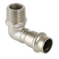 Угольник 90° с нар.р. нерж. сталь 18х3/4" VTi.953.I.001805 - пресс-угольник из нержавеющей стали с наружной резьбой обеспечивает соединение тонкостенной стальной трубы с резьбовым элементом монтируемой системы под углом 90°. Область применения – трубопроводы водоснабжения, отопления, иные инженерные и технологические установки с рабочей температурой до 120 °С и давлением до 16 бар.Пресс-соединение – бесштуцерное. Обжатие производится с помощью пресс-инструмента V-профиля. Шестигранный – под гаечный ключ – участок корпуса облегчает монтаж резьбового соединения.